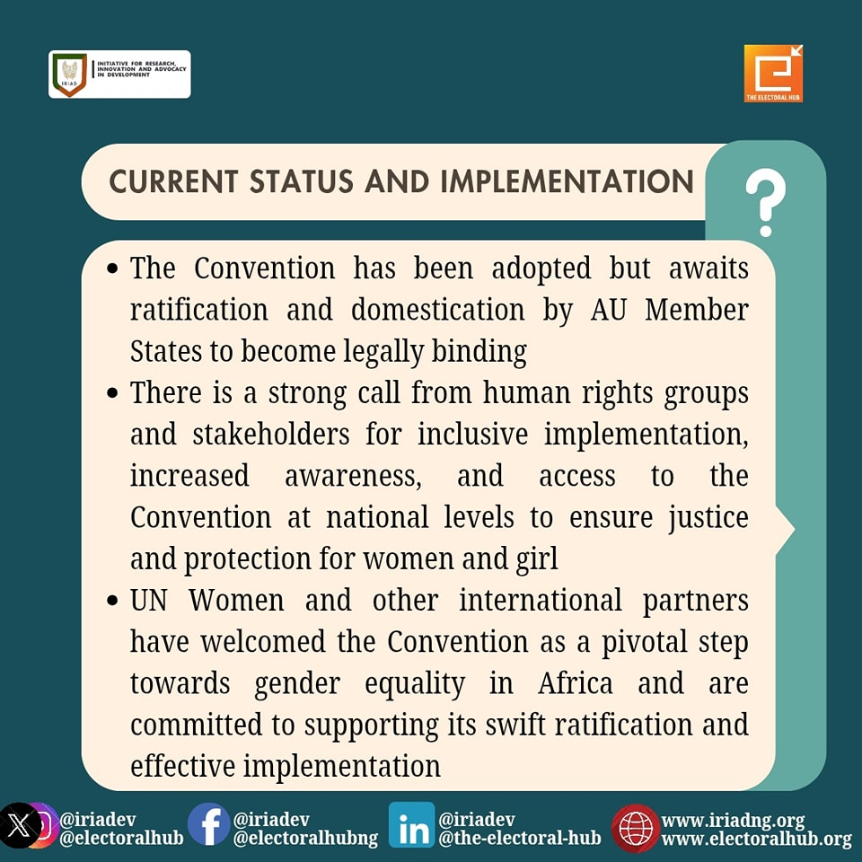 At IRIAD—The Electoral Hub, we affirm that legal frameworks must not only be adopted but also effectively implemented and adequately funded. Advocacy must translate into accountability.