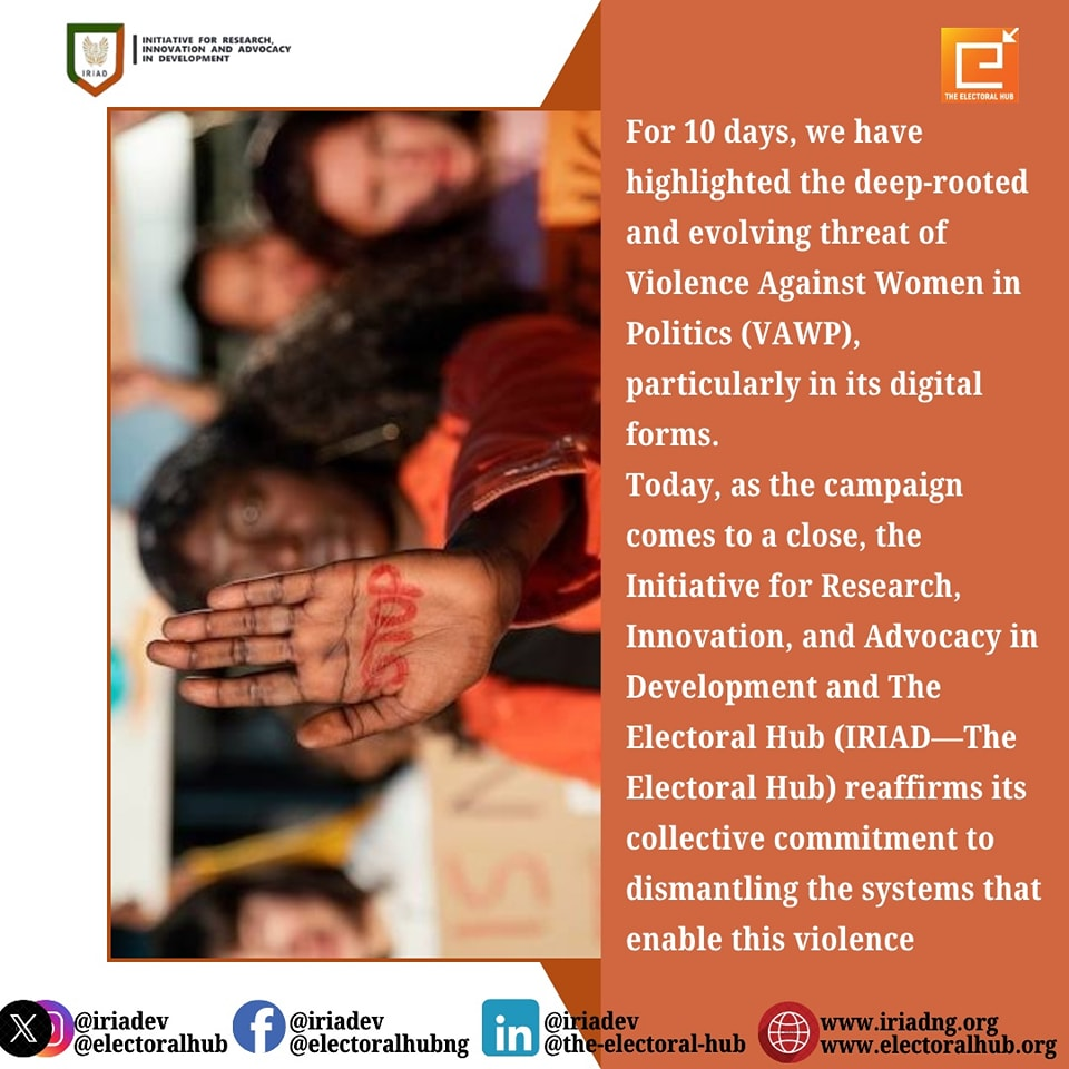 At IRIAD-The Electoral Hub, we know the work does not end with awareness. We are committed to pushing for policies, platforms, and institutions that prioritize safety, justice, and equitable participation in political life.