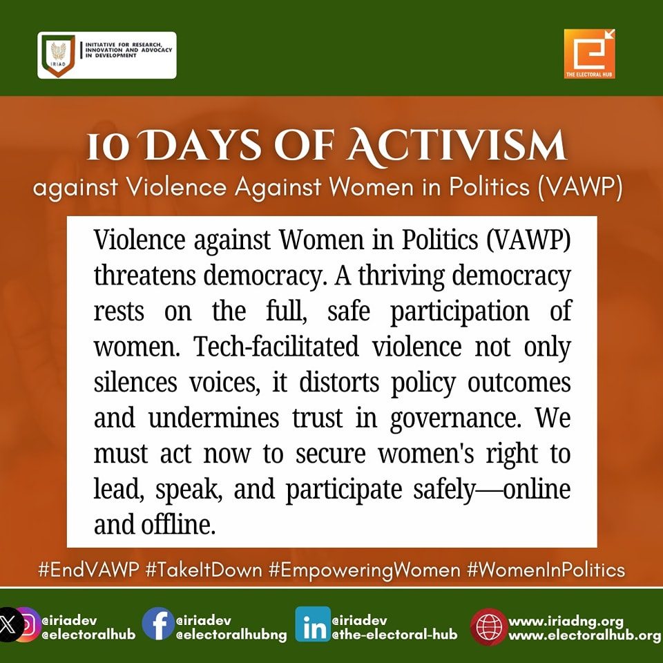 #10DaysofActivism#InclusiveGovernance#NoToPoliticalViolence