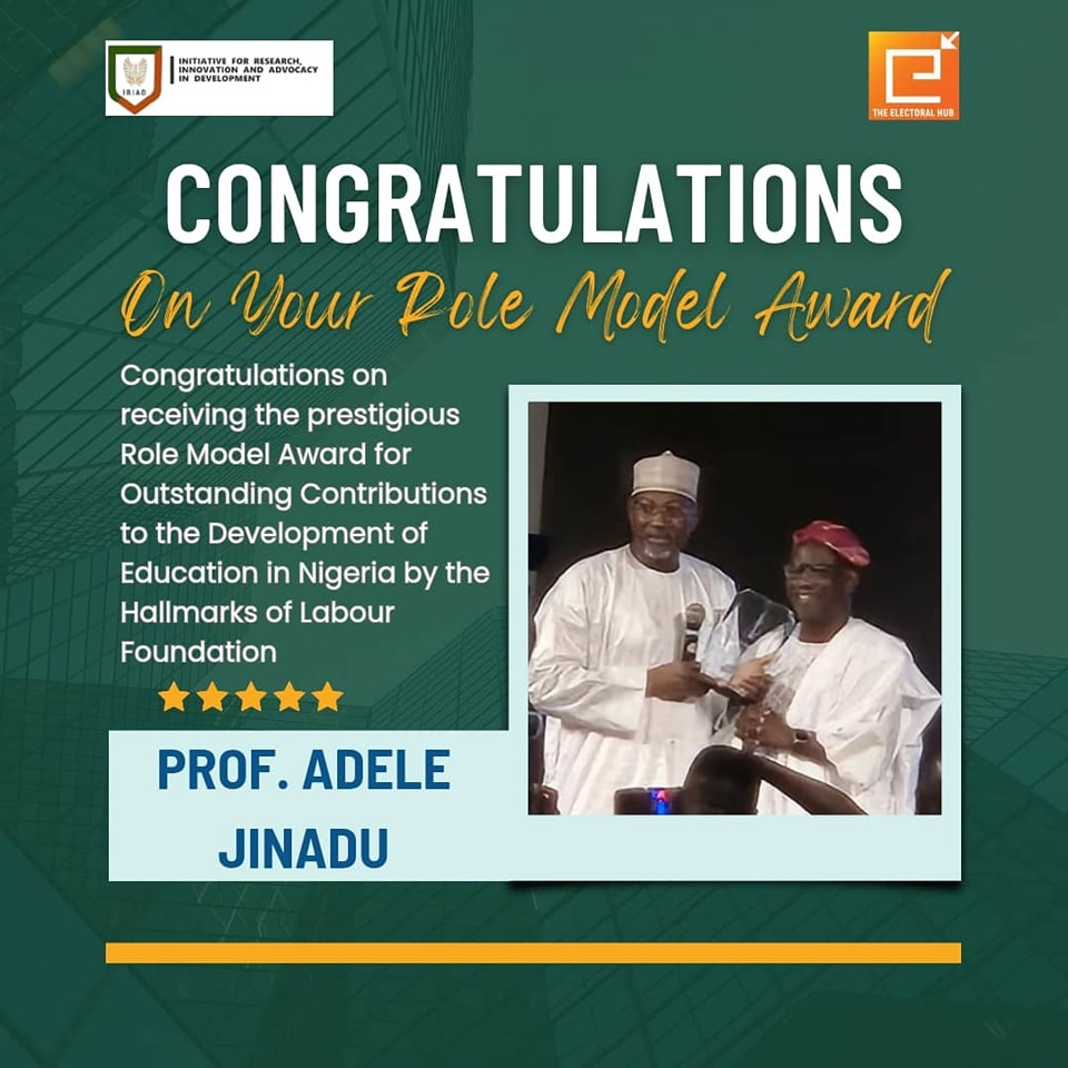 Warmest congratulations to Professor Adele Jinadu on being honored with the prestigious Role Model Award for Outstanding Contributions to the Development of Education in Nigeria by the Hallmarks of Labour Foundation.