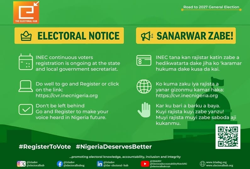 This is your chance to shape Nigeria’s future by voting for credible leaders. Don’t wait – go and register today!